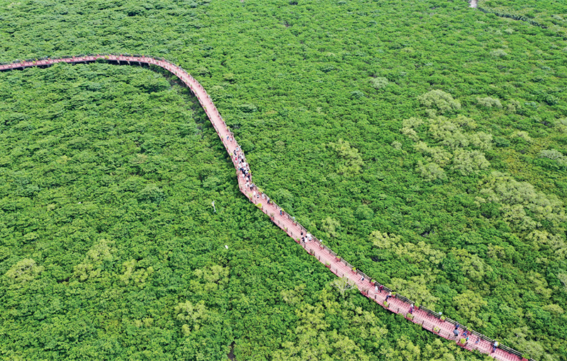 推動(dòng)綠色發(fā)展,建設(shè)生態(tài)文明,重在建章立制。近年來(lái),廣西北侖河口國(guó)家級(jí)自然保護(hù)區(qū)所在的廣西防城港市建立紅樹(shù)林精細(xì)“管、護(hù)、研”一體化工作機(jī)制,全面開(kāi)展巡護(hù)管理、科研監(jiān)測(cè)、宣傳教育、社區(qū)共管、生態(tài)修復(fù)等各項(xiàng)工作,有效推動(dòng)紅樹(shù)林生態(tài)系統(tǒng)質(zhì)量全面提升。圖為2024年8月24日拍攝的廣西北侖河口國(guó)家級(jí)自然保護(hù)區(qū)的紅樹(shù)林。 新華社記者 陸波岸/攝