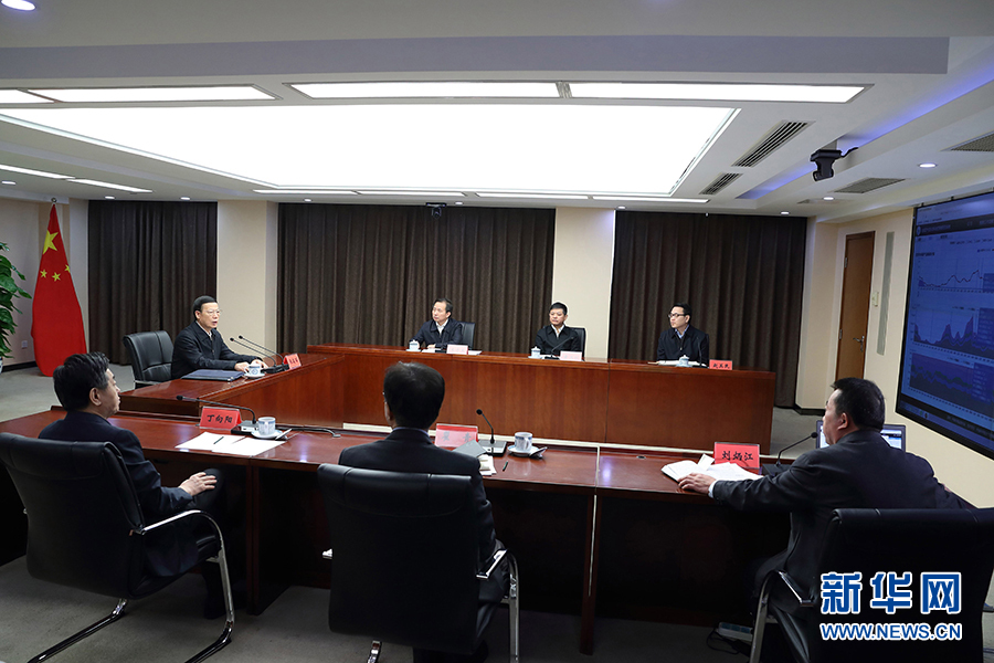 11月17日,國務院副總理張高麗到環(huán)境保護部調研并主持召開座談會。這是張高麗在觀看全國空氣質量實時監(jiān)測數(shù)據(jù)平臺和京津冀傳輸通道城市重污染天氣應急管理平臺演示。新華社記者 王曄 攝