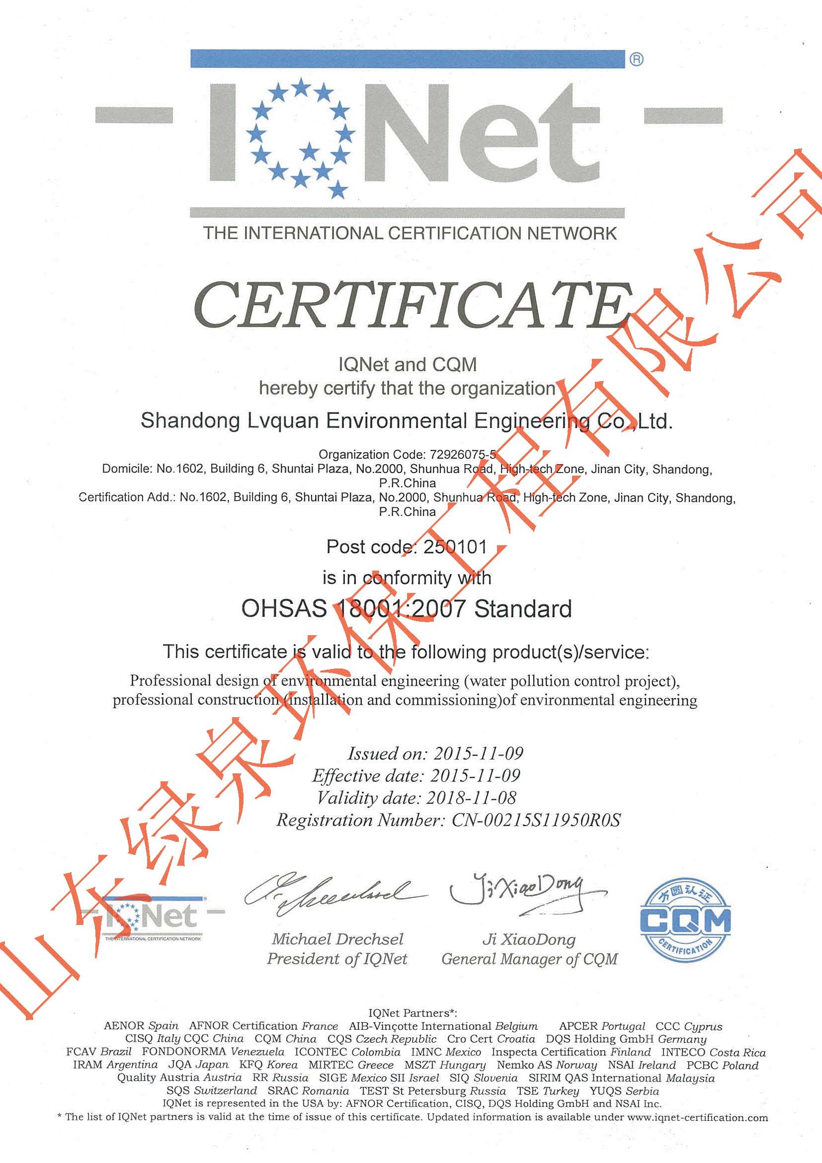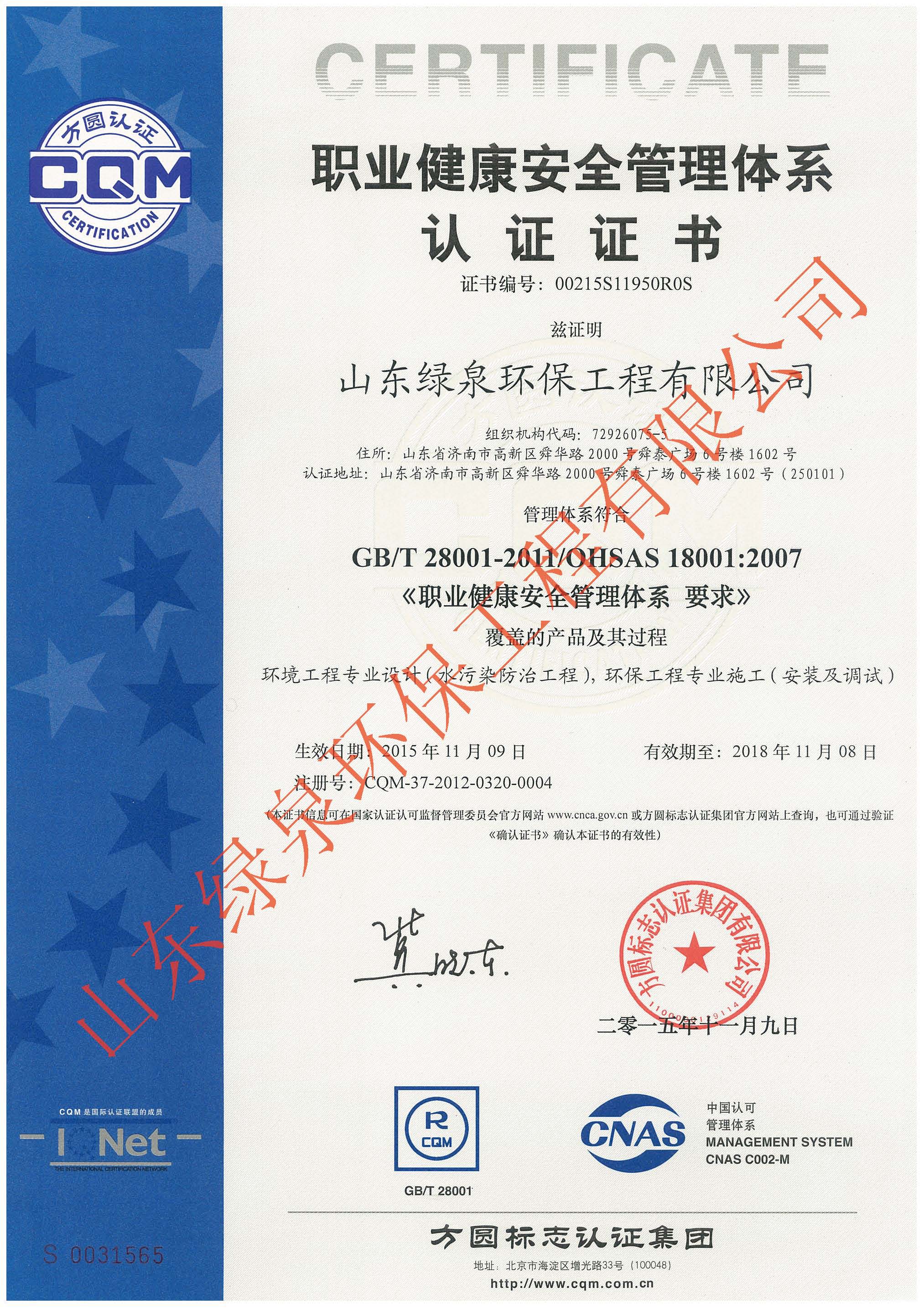 在公司員工的不懈努力下,經(jīng)過(guò)方圓認(rèn)證專家的全面、嚴(yán)格、細(xì)致的指導(dǎo)和審核,確認(rèn)我公司環(huán)境/職業(yè)健康安全管理體系符合ISO14001:2004/OHSAS18001:2007標(biāo)準(zhǔn)的要求,并于2015年11月9日,向我公司正式頒發(fā)了ISO14001和OHSAS18001管理體系認(rèn)證證書(shū)。