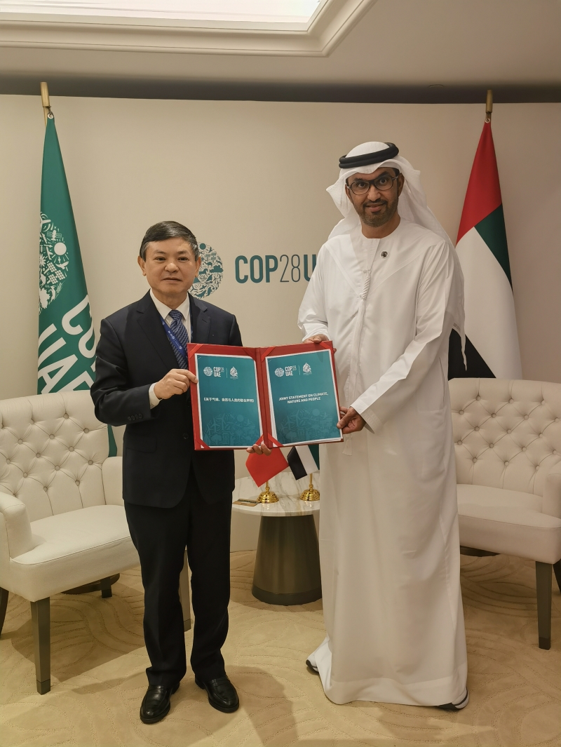 大會(huì)期間,黃潤(rùn)秋與COP28主席蘇爾坦舉行會(huì)見。黃潤(rùn)秋表示,中方期待COP28遵循《聯(lián)合國(guó)氣候變化框架公約》及其《巴黎協(xié)定》目標(biāo)、原則及相關(guān)安排,聚焦行動(dòng)與合作,敦促發(fā)達(dá)國(guó)家提供資金、技術(shù)及能力建設(shè)等方面支持。蘇爾坦感謝中方的全力支持,表示愿與中方加強(qiáng)交流聯(lián)系,攜手推動(dòng)COP28取得成功。